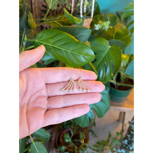 Vintage Solid 14k Yellow Gold Diamond Fan Stud Earrings
