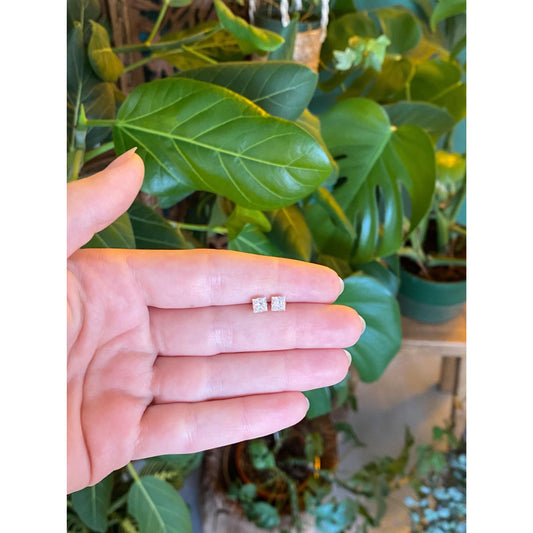 Solid 14k Yellow Gold Square Cubic Zirconia Stud Earrings