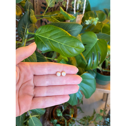 Vintage Solid 14k Yellow Gold Pearl Stud Earrings