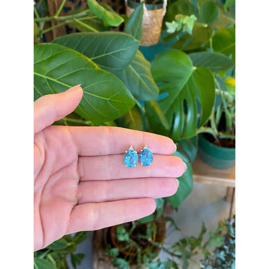 Vintage Solid 14k Yellow Gold Diamond Topaz Stud Earrings