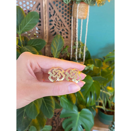 Vintage Solid 14k Yellow Gold Flower Open Work Stud Earrings