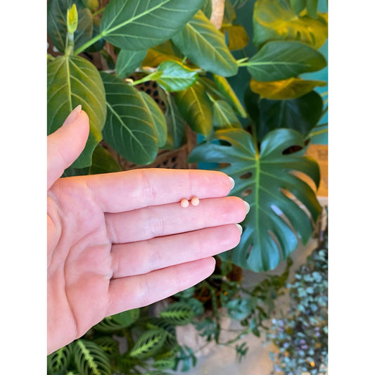 Vintage Solid 14k Yellow Gold Pink Enamel Stud Earrings