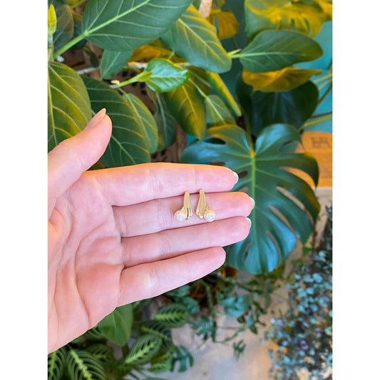 Vintage Solid 14k Yellow Gold & Sterling Silver Pearl Stud Earrings