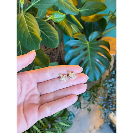 Vintage Solid 14k Yellow Gold Cubic Zirconia X Stud Earrings