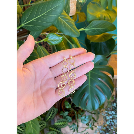 Vintage Solid 14k Yellow Gold Concentric Circle Dangle Stud Earrings