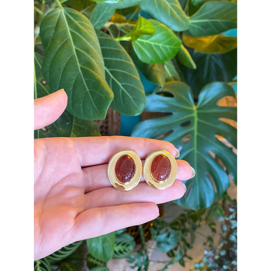 Vintage Solid 14k Yellow Gold Carnelian Citrine Dangle Earrings
