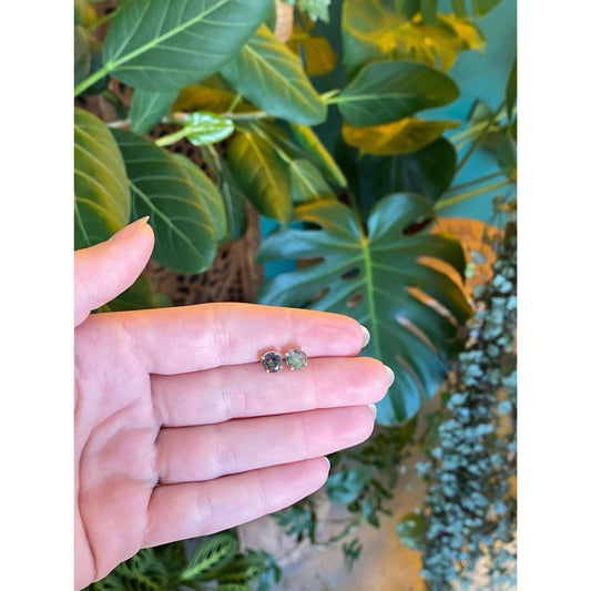 Vintage Solid 14k Yellow Gold Mystic Topaz Stud Earrings