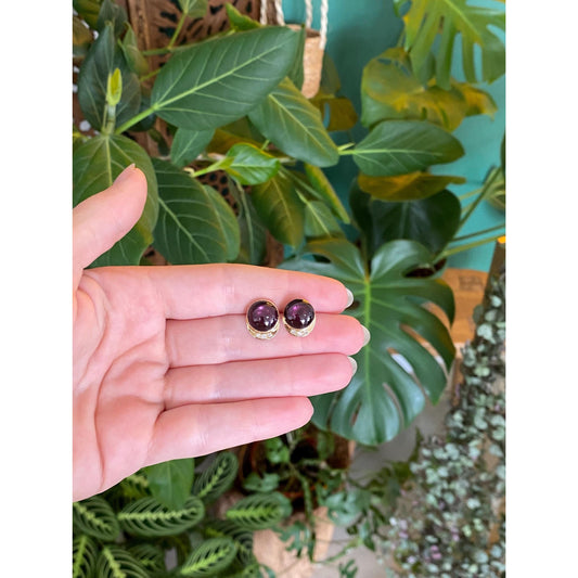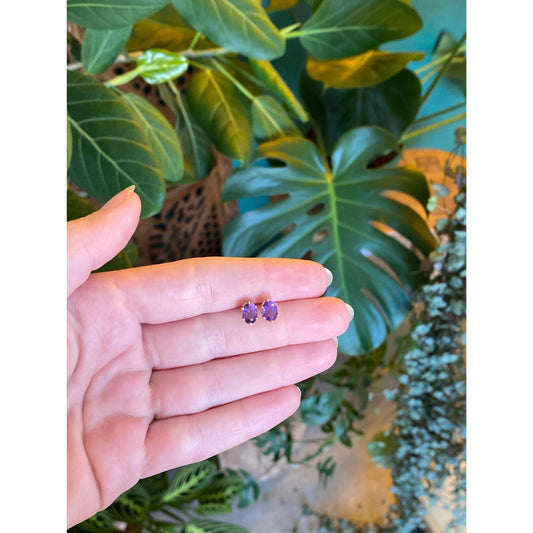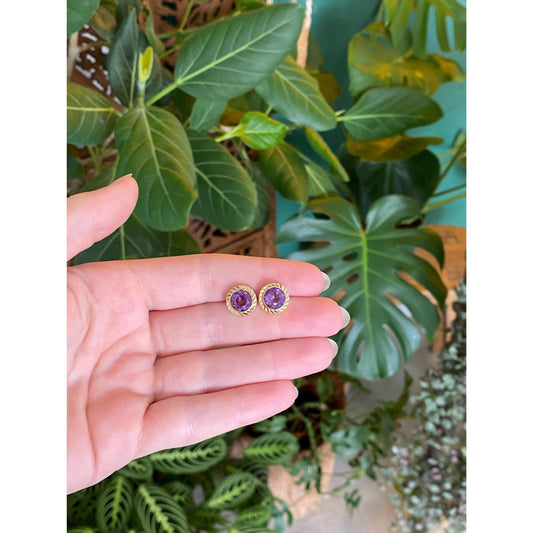Vintage Solid 14k Yellow Gold Amethyst Stud Earrings