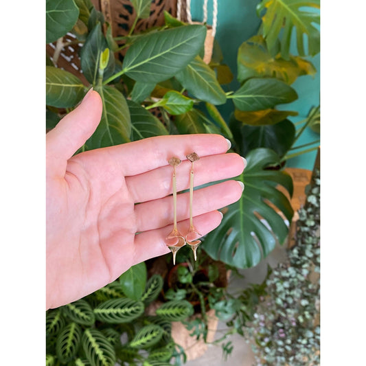 Vintage Solid 14k Yellow Gold Smokey Topaz Mid Century Modern Style Dangle Stud Earrings