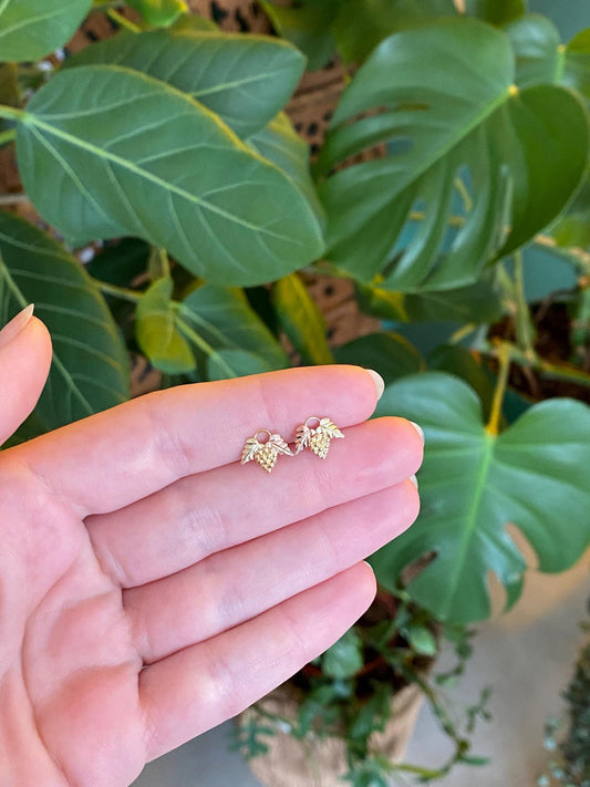 Vintage Solid 10k Black Hills Gold Grapevine Stud Earrings