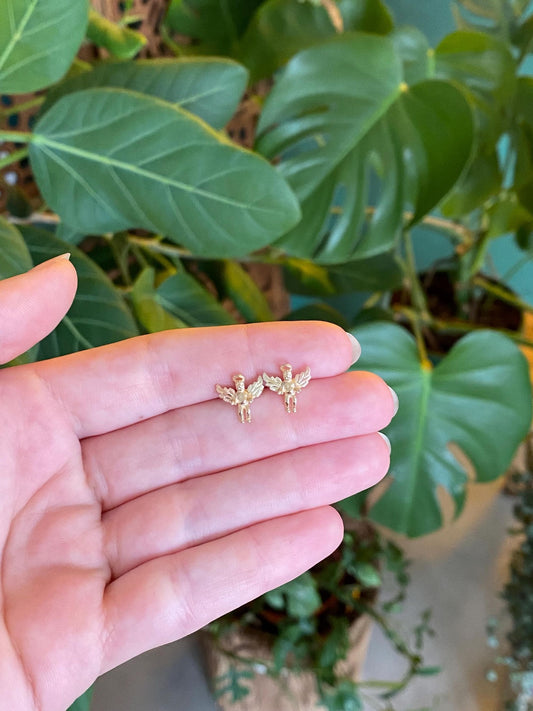 Vintage Solid 10k Black Hills Gold Cupid Stud Earrings