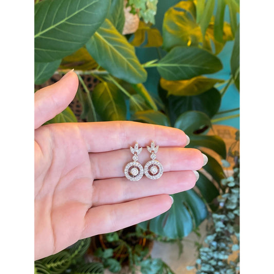 Vintage Solid 14k White & Yellow Gold Cubic Zirconia Drop Earrings