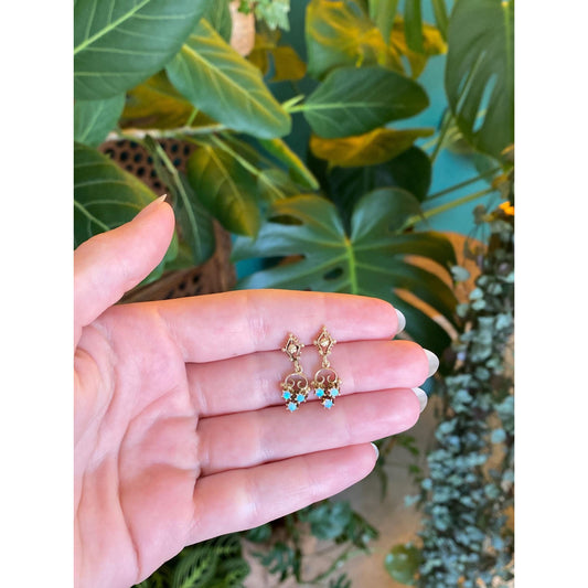 Vintage Solid 14k Yellow Gold Open Work Dangle Stud Earrings