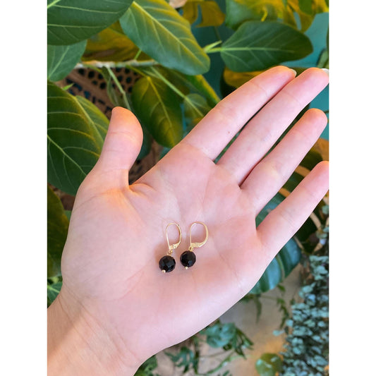Solid 14k Faceted Onyx Dangle Earrings
