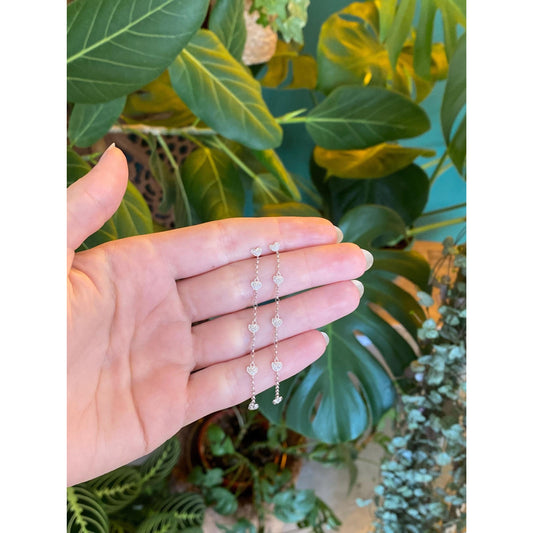 Vintage Solid 14k White Gold Diamond Hearts Rolo Chain Dangle Stud Earrings