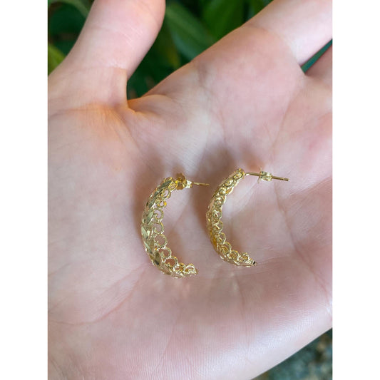 Vintage Solid 14k Yellow Gold Open Work Hoop Earrings