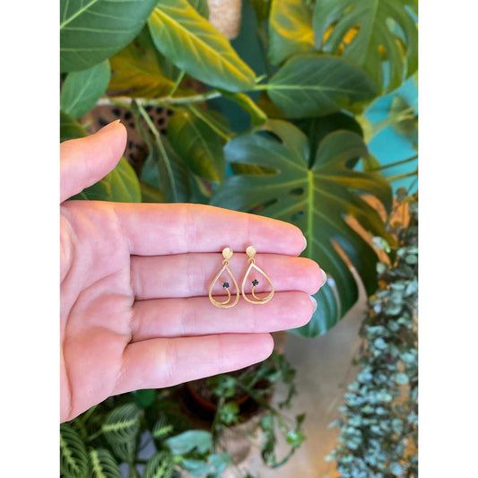 Vintage Solid 14k Yellow Gold Blue Spinel Dangle Stud Earrings