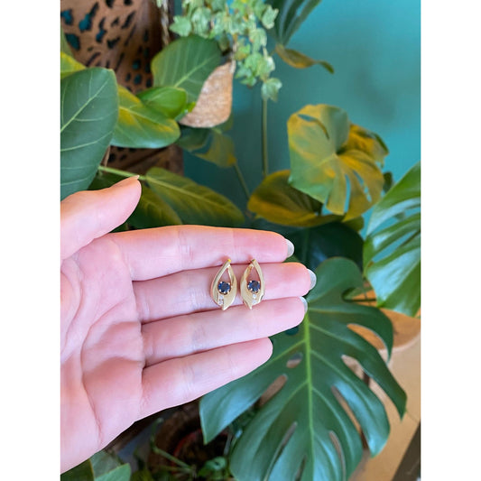 Solid 14k Yellow Gold Diamond Blue Sapphire Drop Earrings