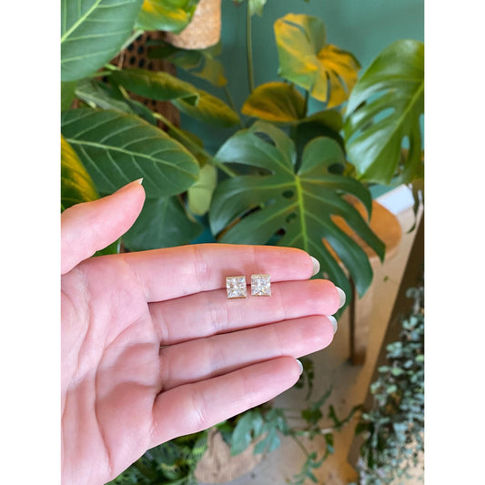 Solid 10k Yellow Gold Cubic Zirconia Square Stud Earrings