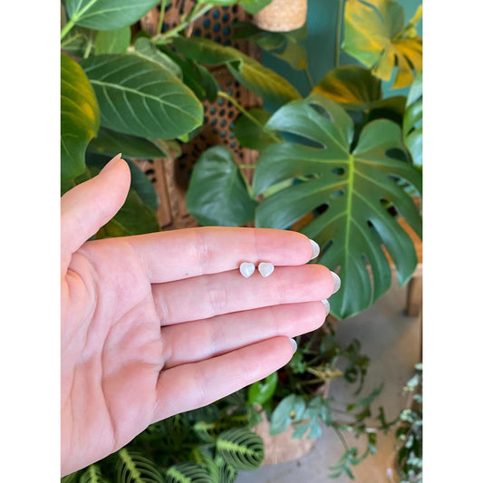 Vintage Solid 14k Yellow Gold White Quartz Heart Stud Earrings