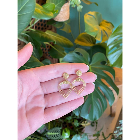 Vintage Solid 18k Yellow Gold Diamond Cut Hearts Openwork Drop Earrings