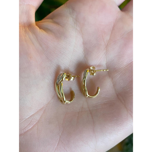 Vintage Solid 14k Yellow Gold Diamond X Hoop Earrings