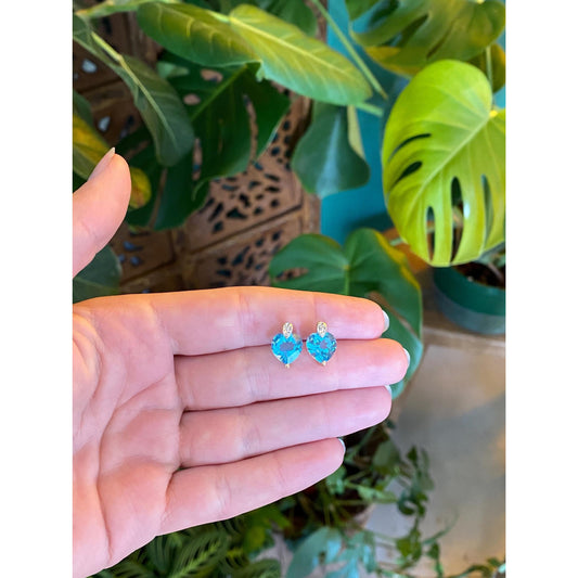 Vintage Solid 14k Yellow Gold Diamond Heart Topaz Stud Earrings