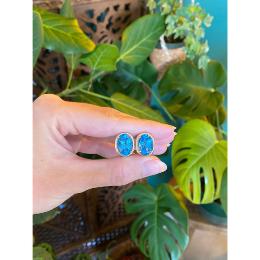 Vintage Solid 14k Yellow Gold Topaz Stud Earrings