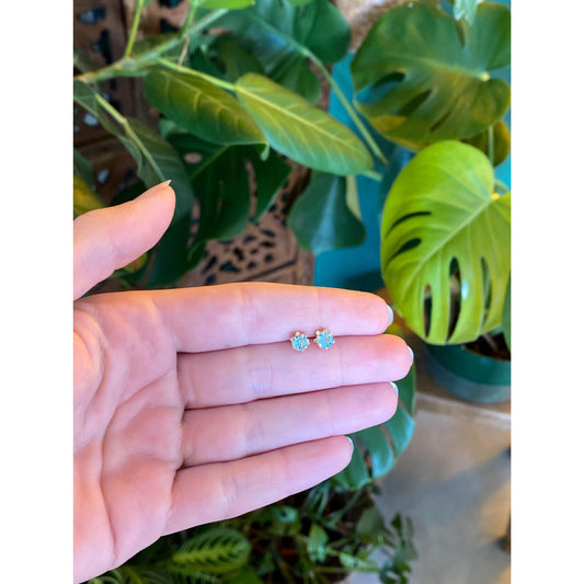 Solid 14k Yellow Gold Light Blue Cubic Zirconia Stud Earrings