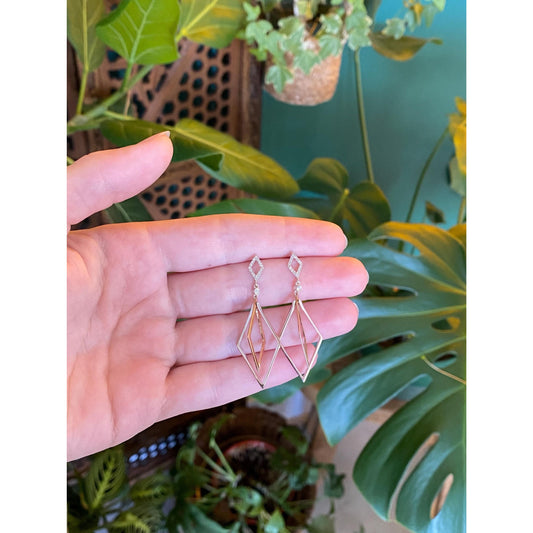 Vintage Solid 14k Rose & White Clear Sapphire Dangle Earrings