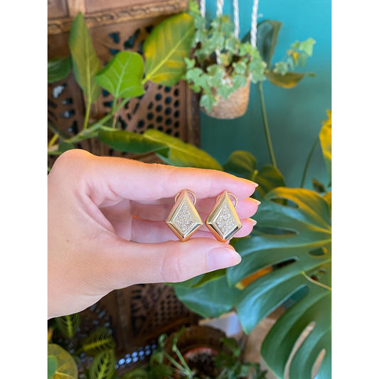 Vintage Solid 14k Yellow Gold Diamond Drop Earrings