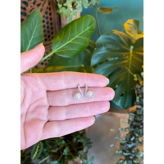Vintage Solid 14k White Gold Diamond & Pearl Drop Earrings