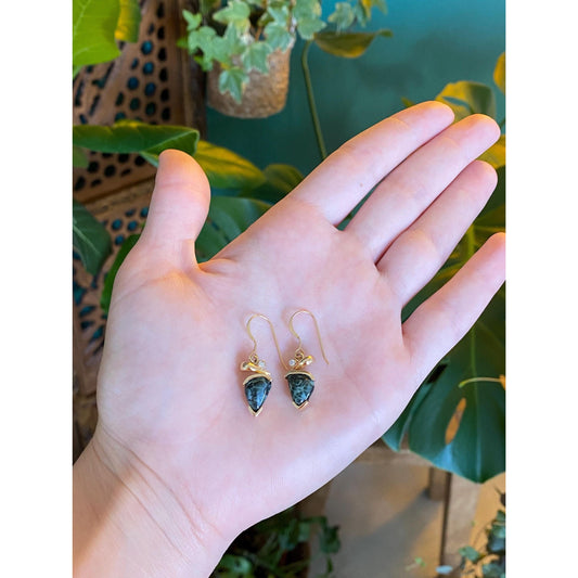 Vintage Solid 14k Yellow Gold Malachite Drop Earrings