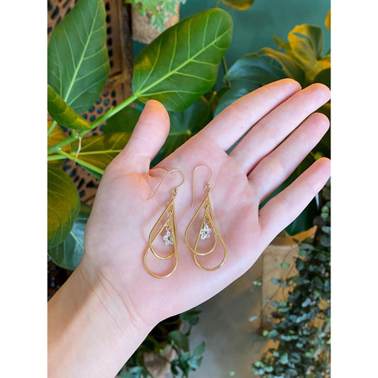 Vintage 14k Yellow Gold & Little White Gold Flower Dangle Earrings