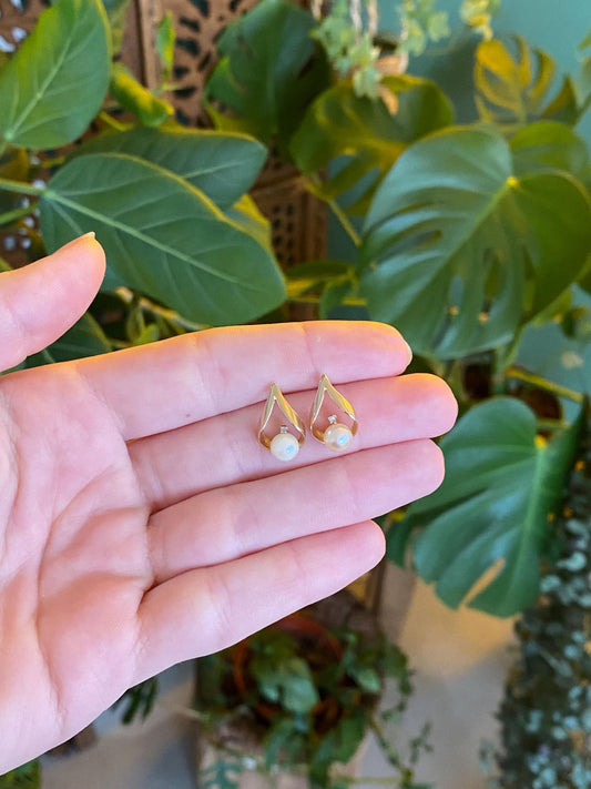 Vintage Solid 14k Yellow Gold Pearl Stud Earrings