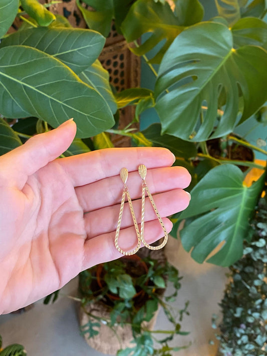 Vintage 14k Yellow Gold Design Teardrop Dangle Stud Earrings