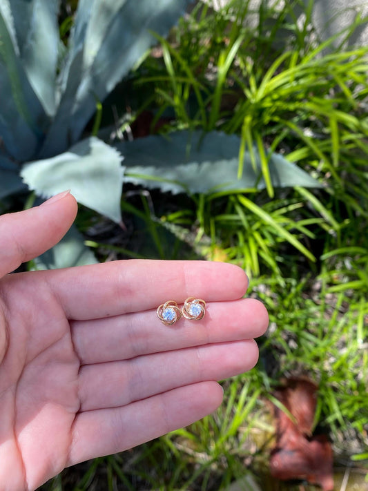 Vintage Solid 14k Yellow Gold Cubic Zirconia Knot Stud Earrings