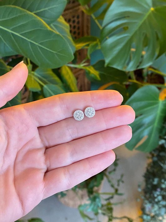 Vintage Solid 10k White Gold Diamond Cluster Stud Earrings