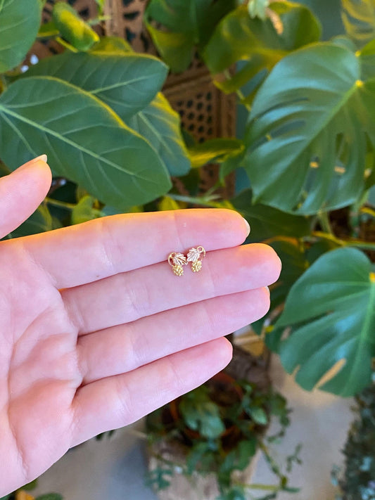 Vintage Solid 14k Rose & Yellow Gold Grape Vine Stud Earrings