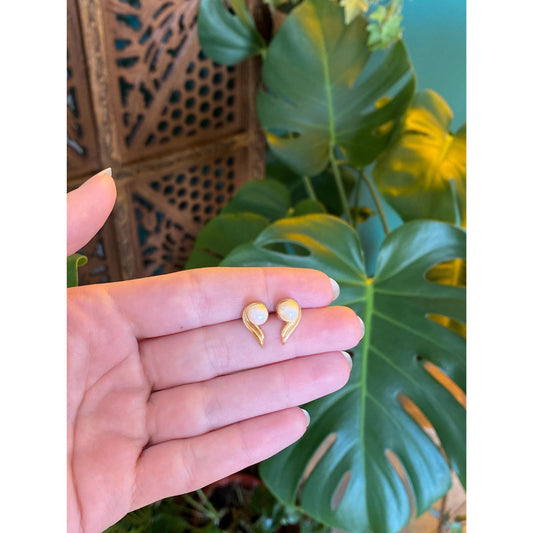 Vintage 14k Yellow Gold Pearl Stud Earrings