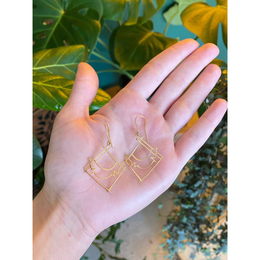 Vintage Solid 14k Yellow Gold Abstract Drop Dangle Earrings