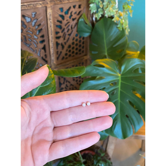 Vintage Solid 14k Yellow Gold Little Pearl Stud Earrings