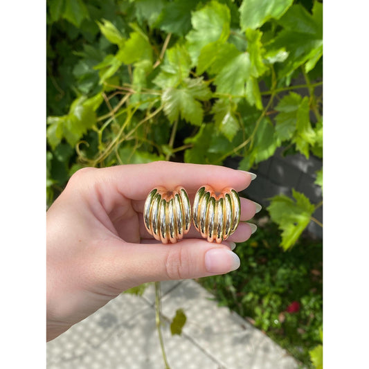 Vintage 14k Yellow Gold Diamond Cut Layered Hoop Earrings