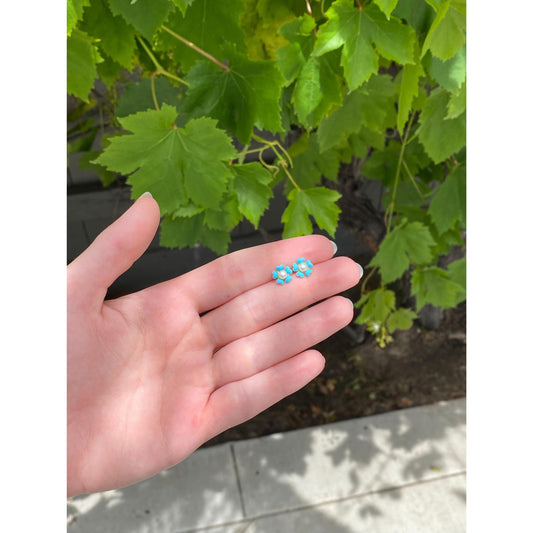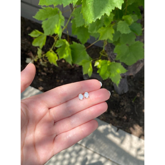 Vintage Solid 14k White & Yellow Gold Opal Stud Earrings