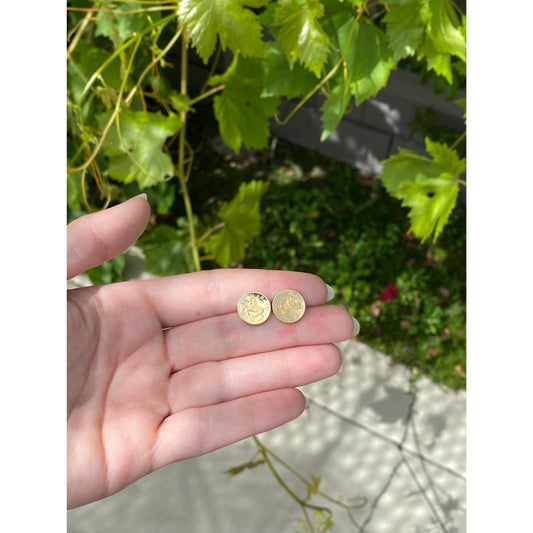 Vintage Solid 18k Yellow Gold Taurus Bull Coin Stud Earrings