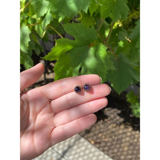 Vintage Solid 10k Yellow Gold Amethyst Bullet Stud Earrings