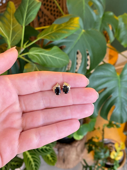Vintage Solid 14k Yellow Gold Blue Sapphire Diamond Stud Earrings