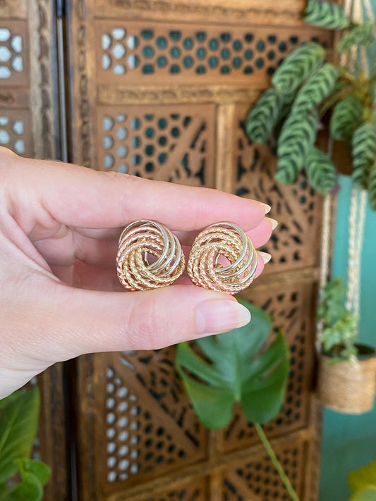 Vintage 14k Tri Tone Gold Knot Stud Earrings
