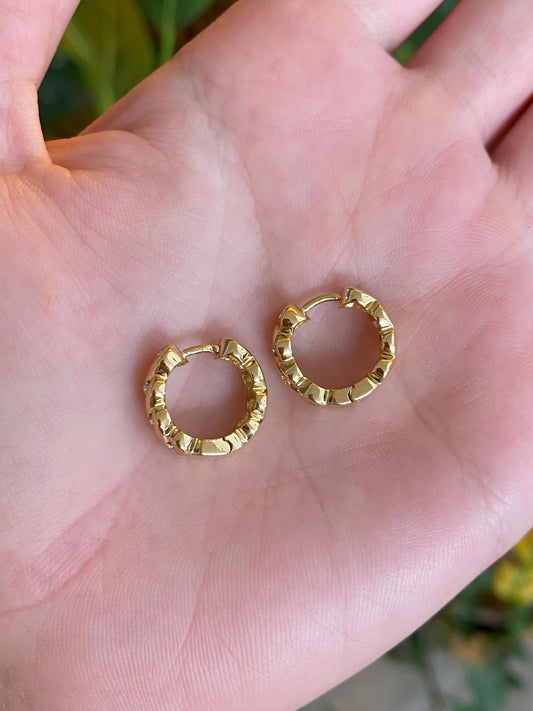 Vintage Solid 18k Yellow Gold Diamond Twist Hoop Earrings