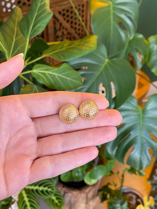 Vintage Solid 14k Yellow Gold Woven Open Work Domed Stud Earrings